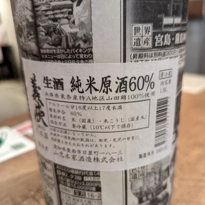 義侠 純米60% 特別栽培米 山田錦生原酒 令和3年度醸造720ml