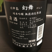 真の日本酒好きが気に入りそうな奥深い味。爽やかでもあり、品があり、時には重く感じ、若干のセメダイン味もする。。上田市の某酒屋で購入したが、店主曰く、地元の酒飲みの間で、非常に評判が良いのが、この純吟らしい。他の幻舞は一升瓶が残っていたが、純吟は一瞬で売れるらしい。明日以降味がどう変わるか楽しみ。