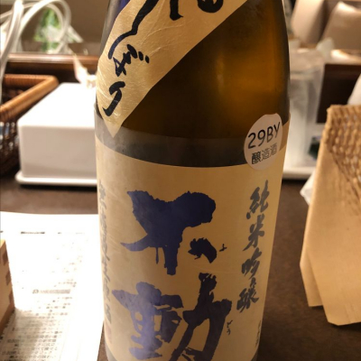 不動純米吟醸、吊るししぼり。以前、夏酒を呑んだ時は無難なお酒という印象だったが。こちらは生原酒で濃厚な味、旨味が強いです。コストパフォーマンスは高し!