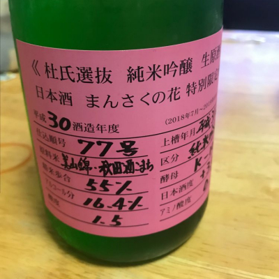 まんさくの花 限定品 純米吟醸生原酒 「杜氏選抜ピンクラベル」 秋田県のお酒! 久々に通販で日本酒買ってみた!今日はそのうちの一本! 杜氏さんがお薦めの原酒を自ら監修のもと瓶詰めした限定品。 香りは控えめで旨味とフルーティーさが程よくあってサッパリしてて美味しい!