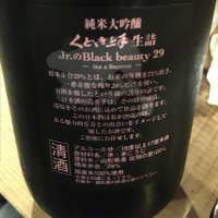 純米大吟醸 くどき上手 生詰 Jr.のblack beauty 29 うなぎだにさんで680円/90ml わずかに辛口よりのバランス系。ややあっさり。29%精米の綺麗なお酒です。ただ先入観なしに飲むと、そこまで高精米という感じでもないような。 1升瓶で4200円とコスパが高い。くどき上手はハズレがないが、Jr.も美味しい。